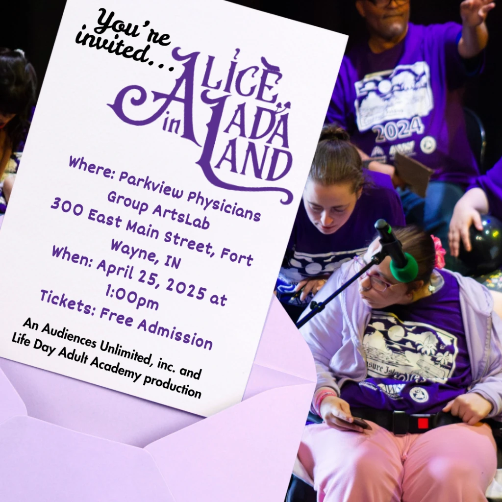 Mark your calendars! On Friday, April 25, at 1 p.m., Audiences Unlimited and Life Adult Day Academy (LADA) invite you to a magical afternoon performance of Alice in LADAland at Parkview Physicians Group ArtsLab, located at 300 E. Main Street, Fort Wayne. Admission is free, and everyone is welcome!